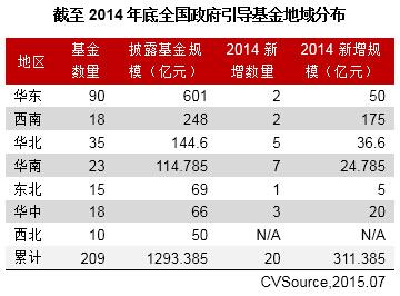 表1 截至2014年底全國(guó)政府引導(dǎo)基金地域分布