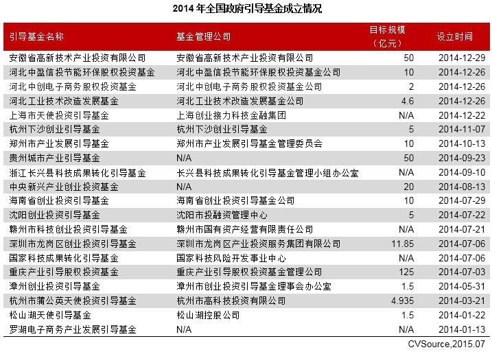 表2 2014年全國(guó)政府引導(dǎo)基金成立情況