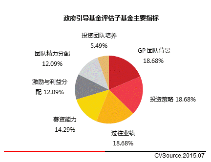 根據(jù)投中集團(tuán)2014年政府引導(dǎo)基金調(diào)研情況顯示,在評(píng)估子基金是否成為引導(dǎo)基金的投資標(biāo)的時(shí),引導(dǎo)基金重點(diǎn)的考量維度放在GP團(tuán)隊(duì)背景、投資策略、過(guò)往業(yè)績(jī)、募資能力、基金激勵(lì)與利益分配、團(tuán)隊(duì)精力分配以及投資團(tuán)隊(duì)培養(yǎng),其中最為關(guān)注的是GP團(tuán)隊(duì)背景、投資策略、過(guò)往業(yè)績(jī)和募資能力,團(tuán)隊(duì)過(guò)往是否曾經(jīng)作為一個(gè)股權(quán)基金的合作團(tuán)隊(duì)、過(guò)往主投及退出業(yè)績(jī)、以及募資能力都是一支基金成功運(yùn)作的基礎(chǔ),因此,引導(dǎo)基金在評(píng)估時(shí)也將著重考慮。